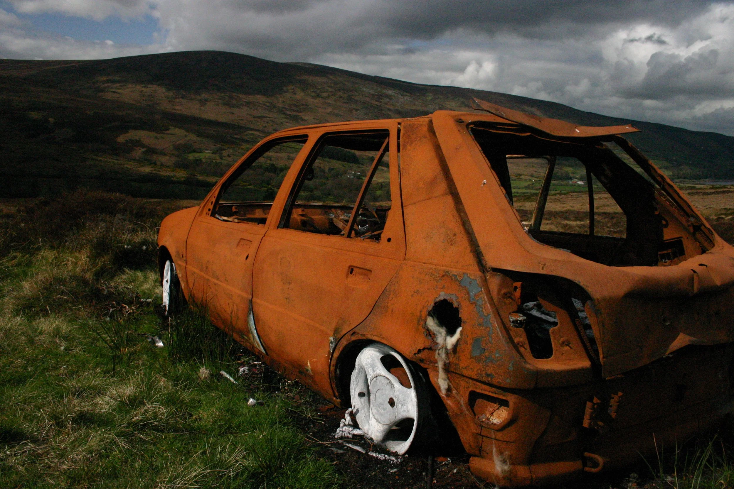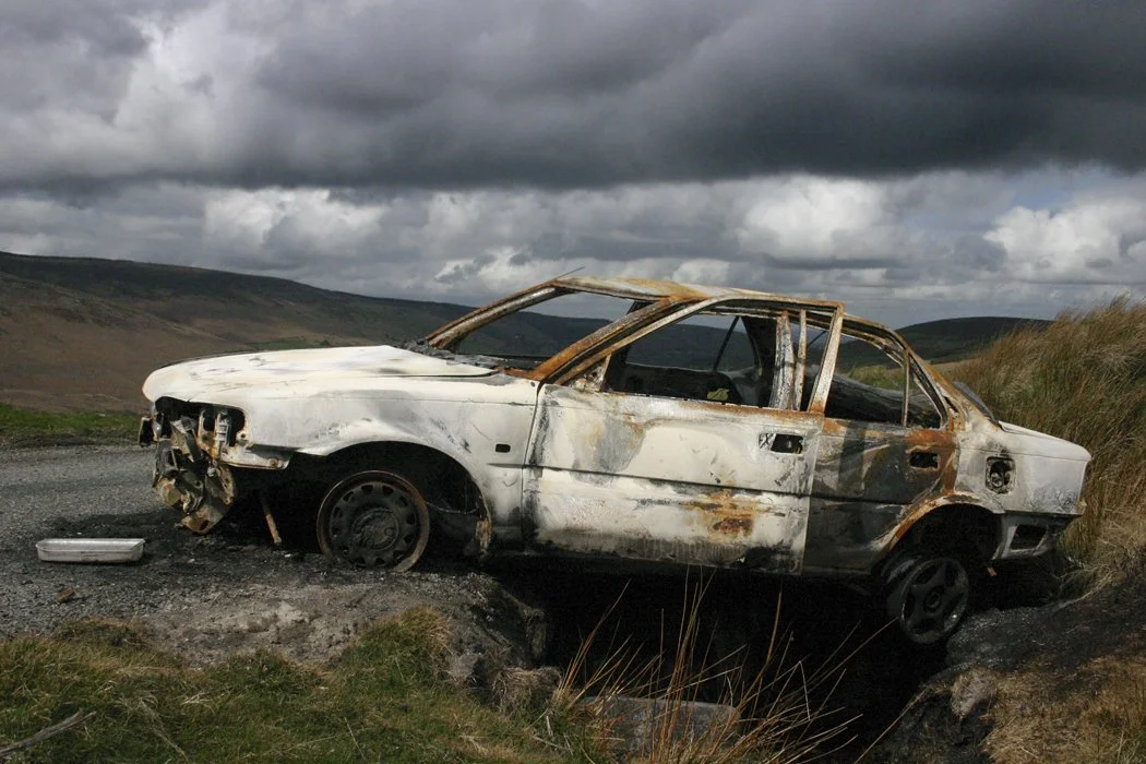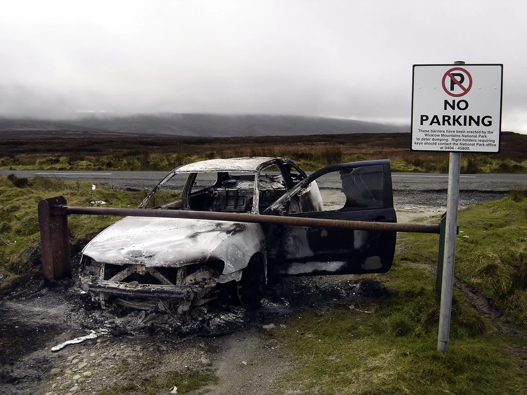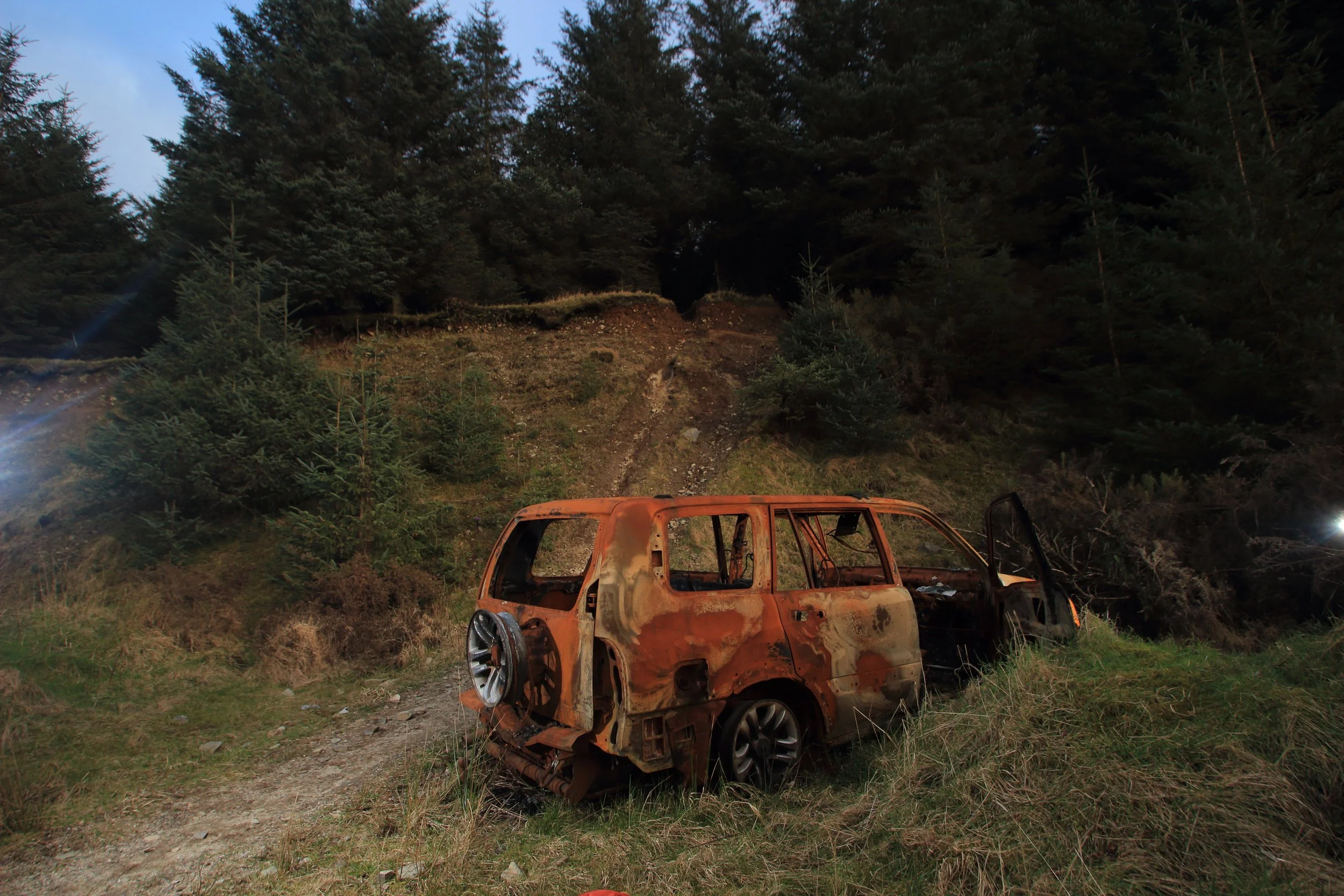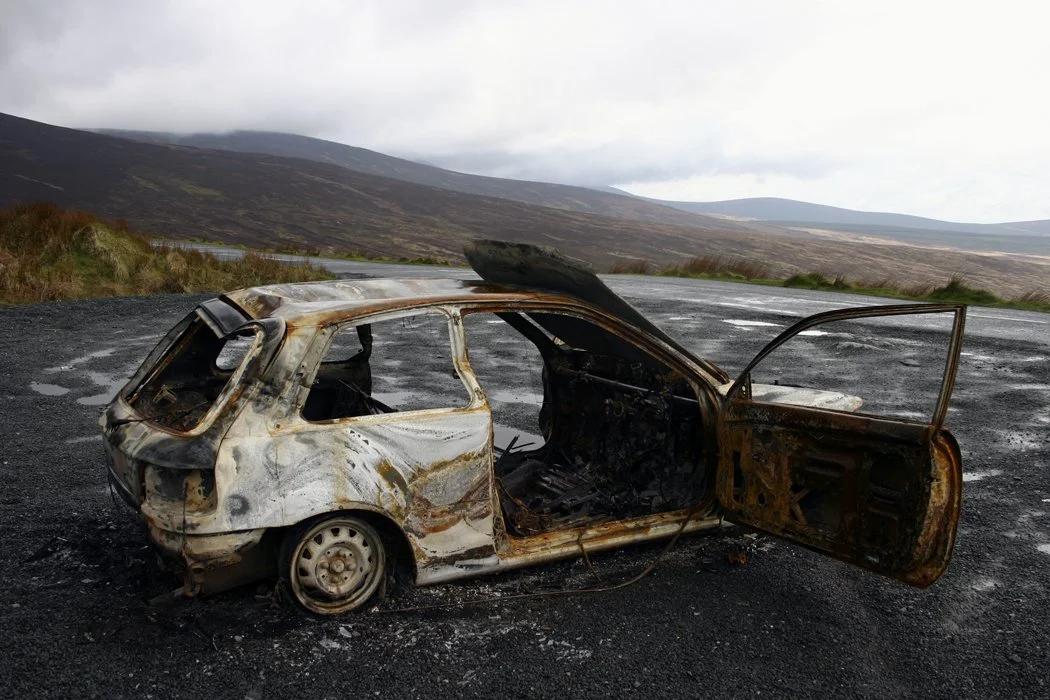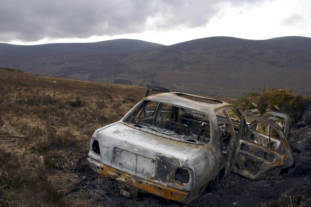 This work was made in 2006. During that year it was hard not to find an abandoned and burned out car in the Dublin mountains on almost any given day. The practise of ‘Joy Riding’ is of North American origin and became popular as a term in Britain and Ireland in the early 1910s. It was defined as ‘to ride at high speed’ and initially applied to all those who took their cars out for recreational drives. It was later used negatively to describe car owners who took non-essential rides at the time of petrol shortages during World War One. By the end of 1930, the Garda announced that an average of three cars a day were being stolen by joy riders in Dublin city. The vast majority of which were found abandoned and undamaged twenty four hours later. Often they were found within a few miles of the city, having been driven until the petrol supply is exhausted.