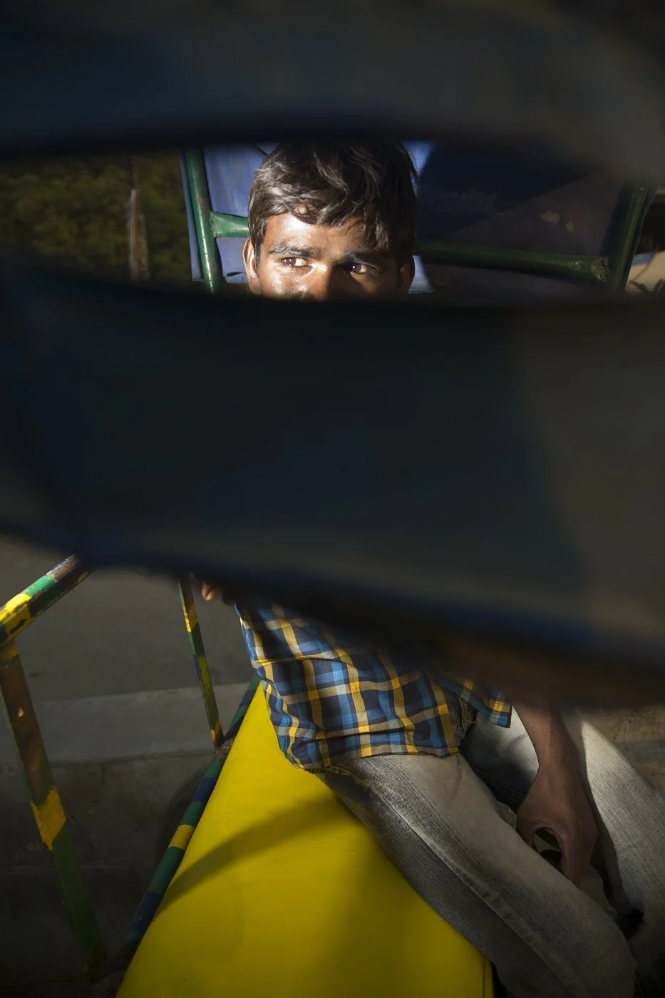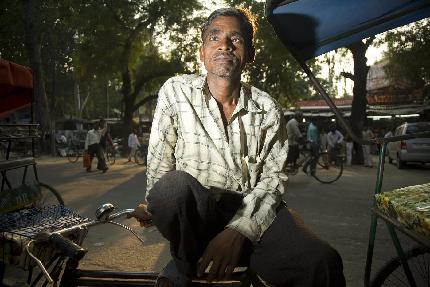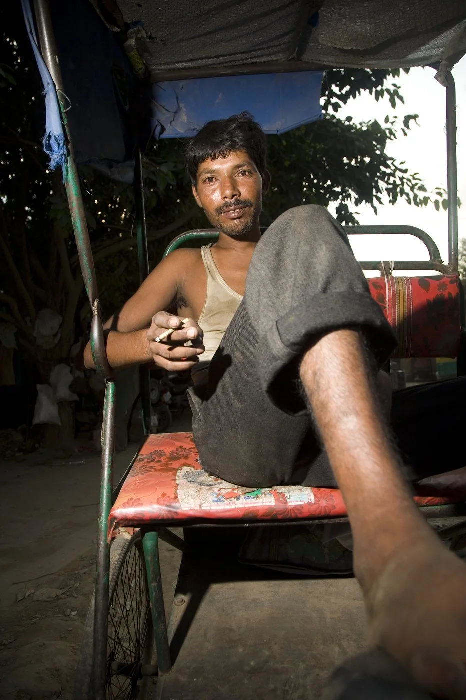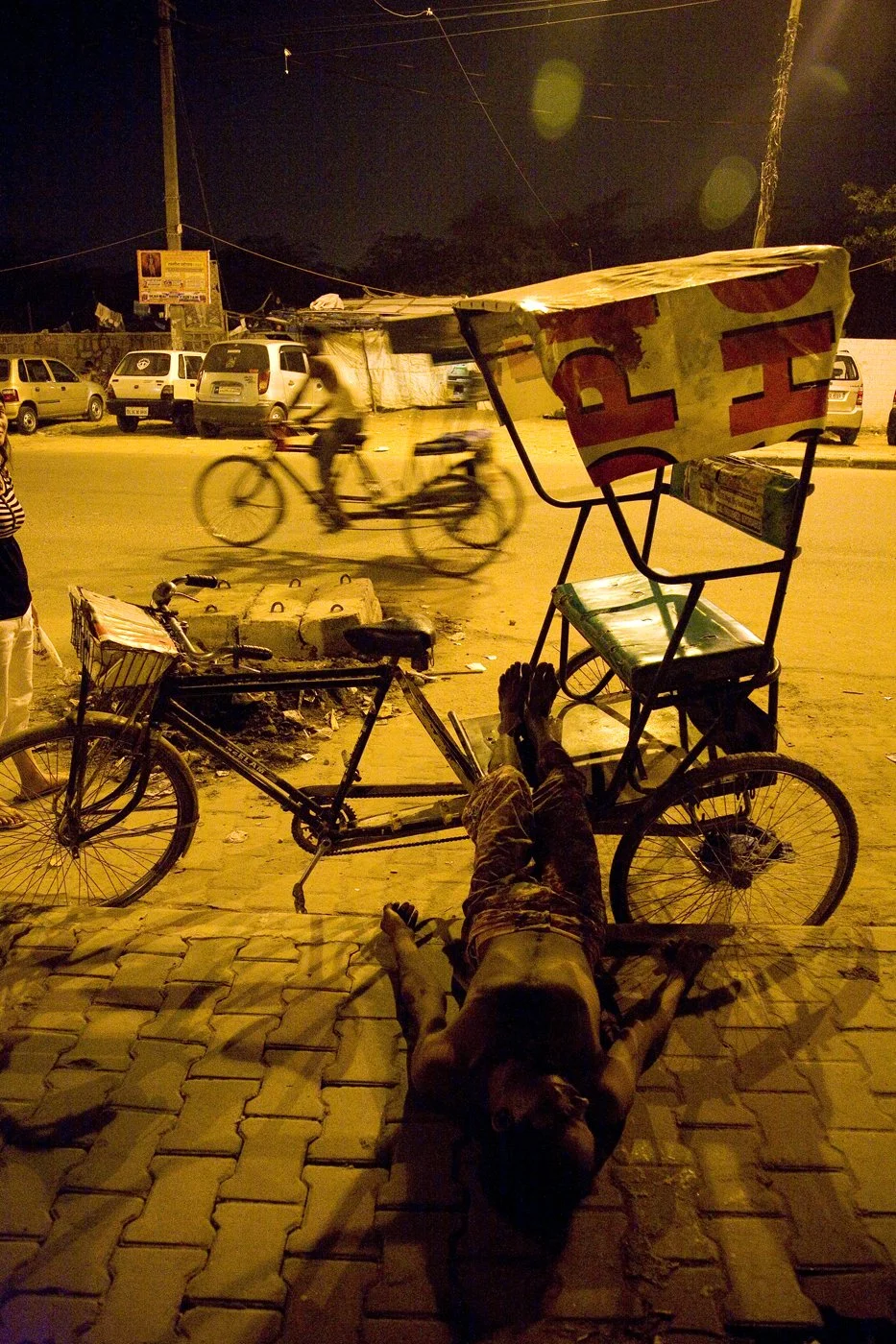 Nearly 90 percent of all the poor Indians and 95 percent of all the illiterate Indians are Dalits. My choice to photograph the rickshaw drivers of Delhi came about when I visited India in 2009 for 4 months as part of my Masters project in the National College of Art and Design. I felt an affinity with these men who sometimes earn less than $2 a day. These men are some of the last rickshaw drivers in the world. Many young immigrants see pulling a rickshaw as a means of upward social mobility. I witnessed a determination in their faces to succeed for their families, many of whom are originally from an impoverished area of South East India called Pondicherry.