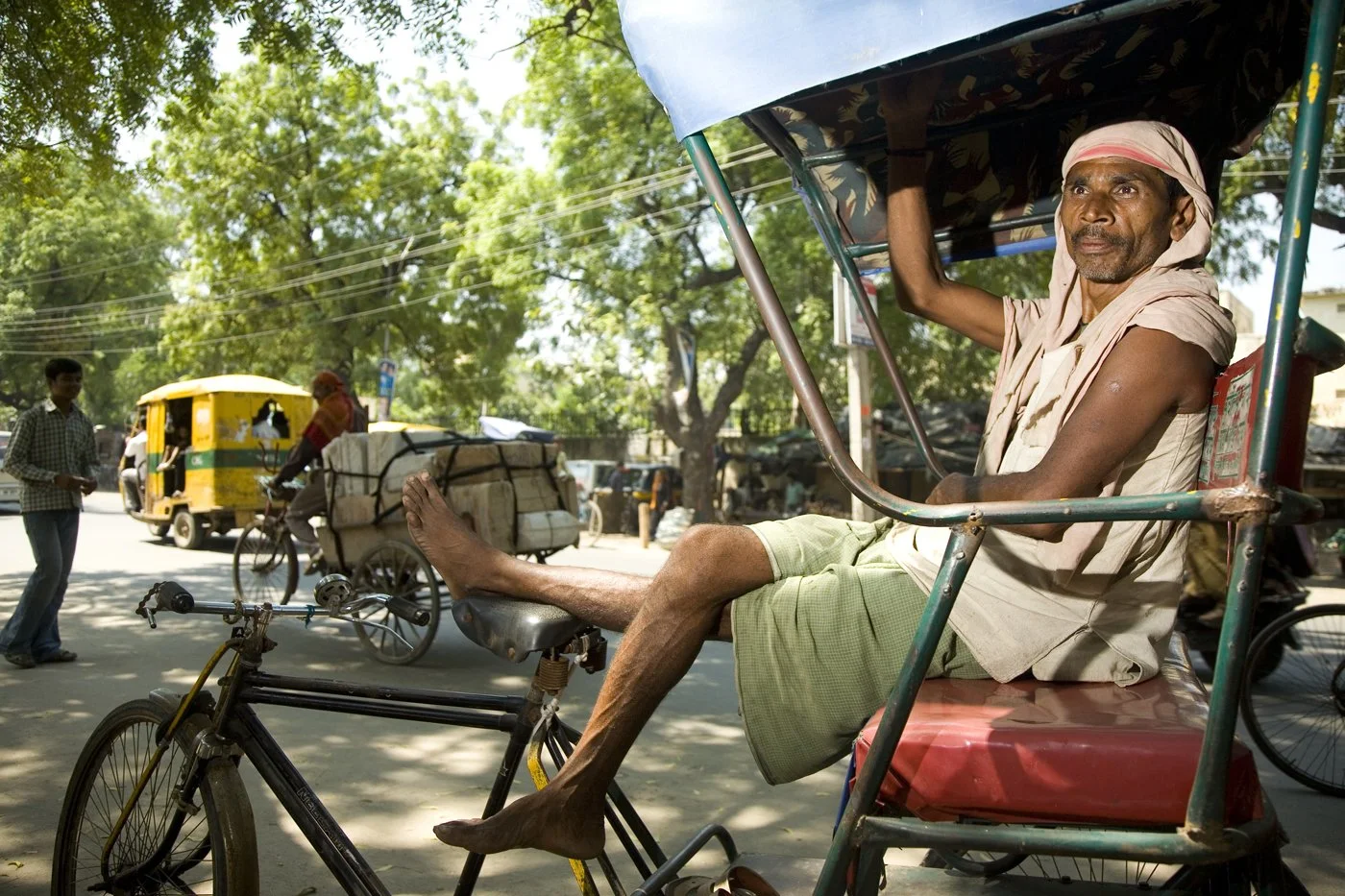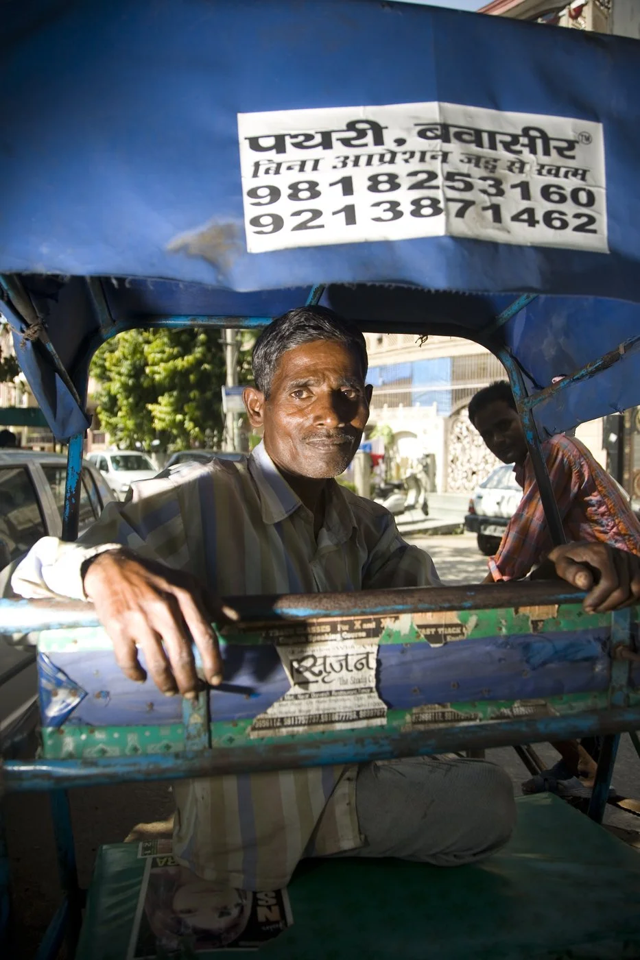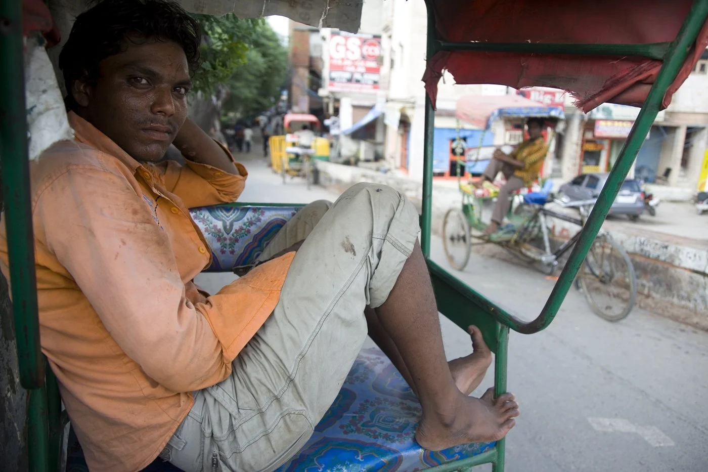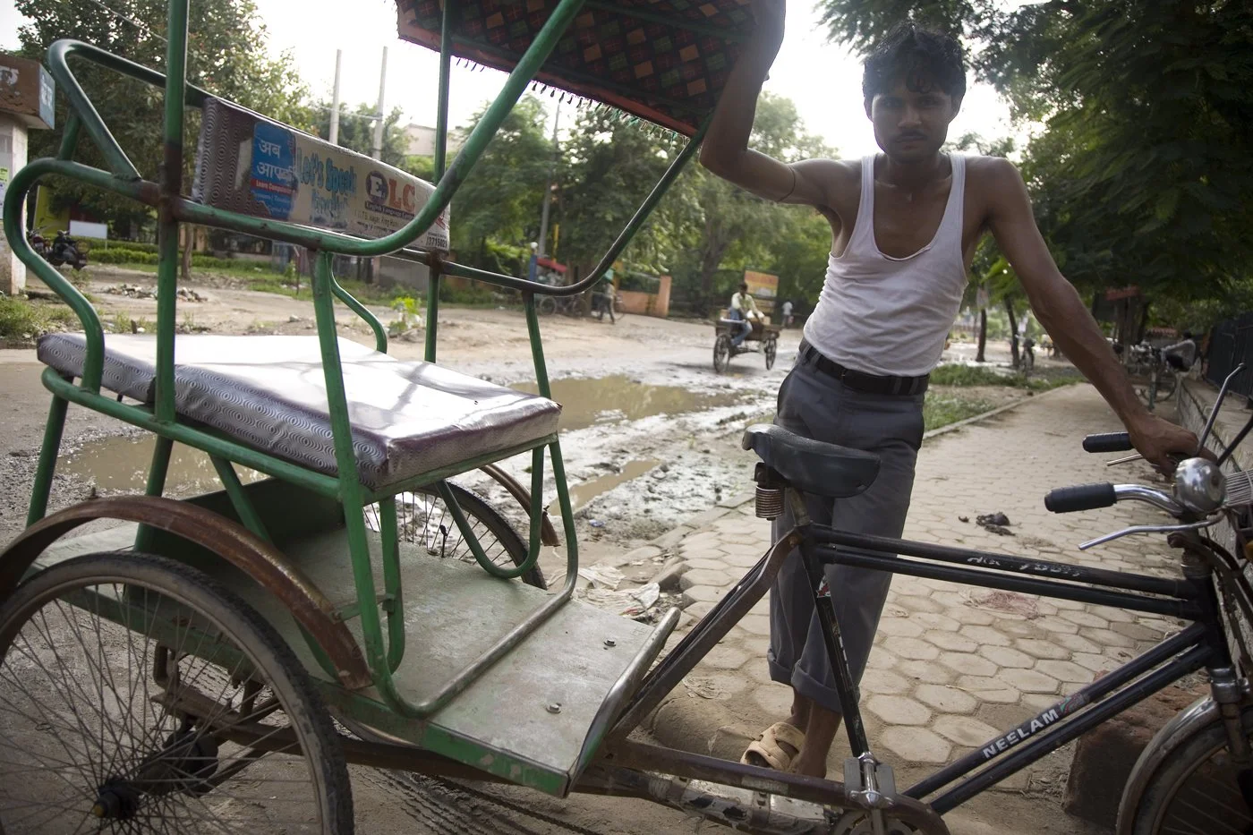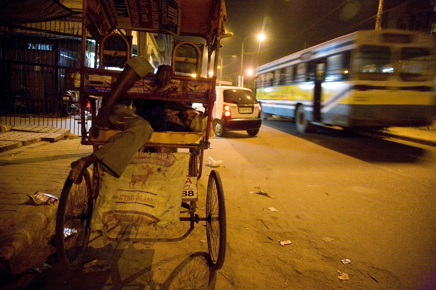 Nearly 90 percent of all the poor Indians and 95 percent of all the illiterate Indians are Dalits. My choice to photograph the rickshaw drivers of Delhi came about when I visited India in 2009 for 4 months as part of my Masters project in the National College of Art and Design. I felt an affinity with these men who sometimes earn less than $2 a day. These men are some of the last rickshaw drivers in the world. Many young immigrants see pulling a rickshaw as a means of upward social mobility. I witnessed a determination in their faces to succeed for their families, many of whom are originally from an impoverished area of South East India called Pondicherry.