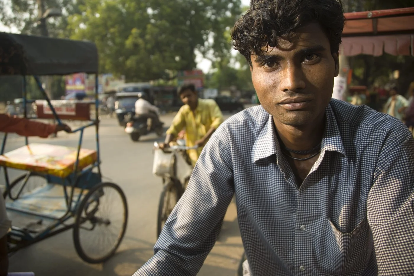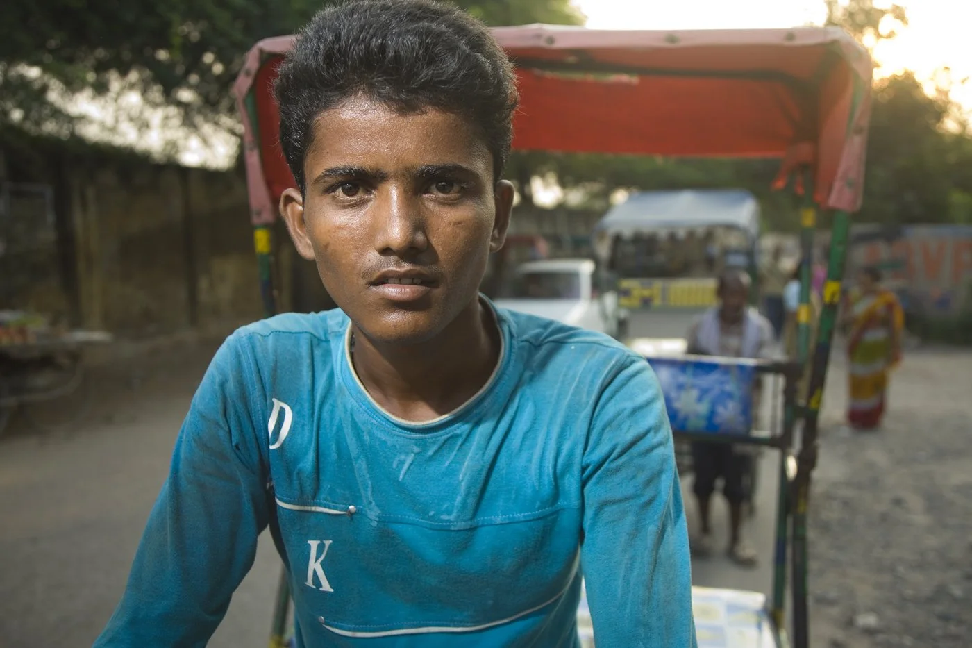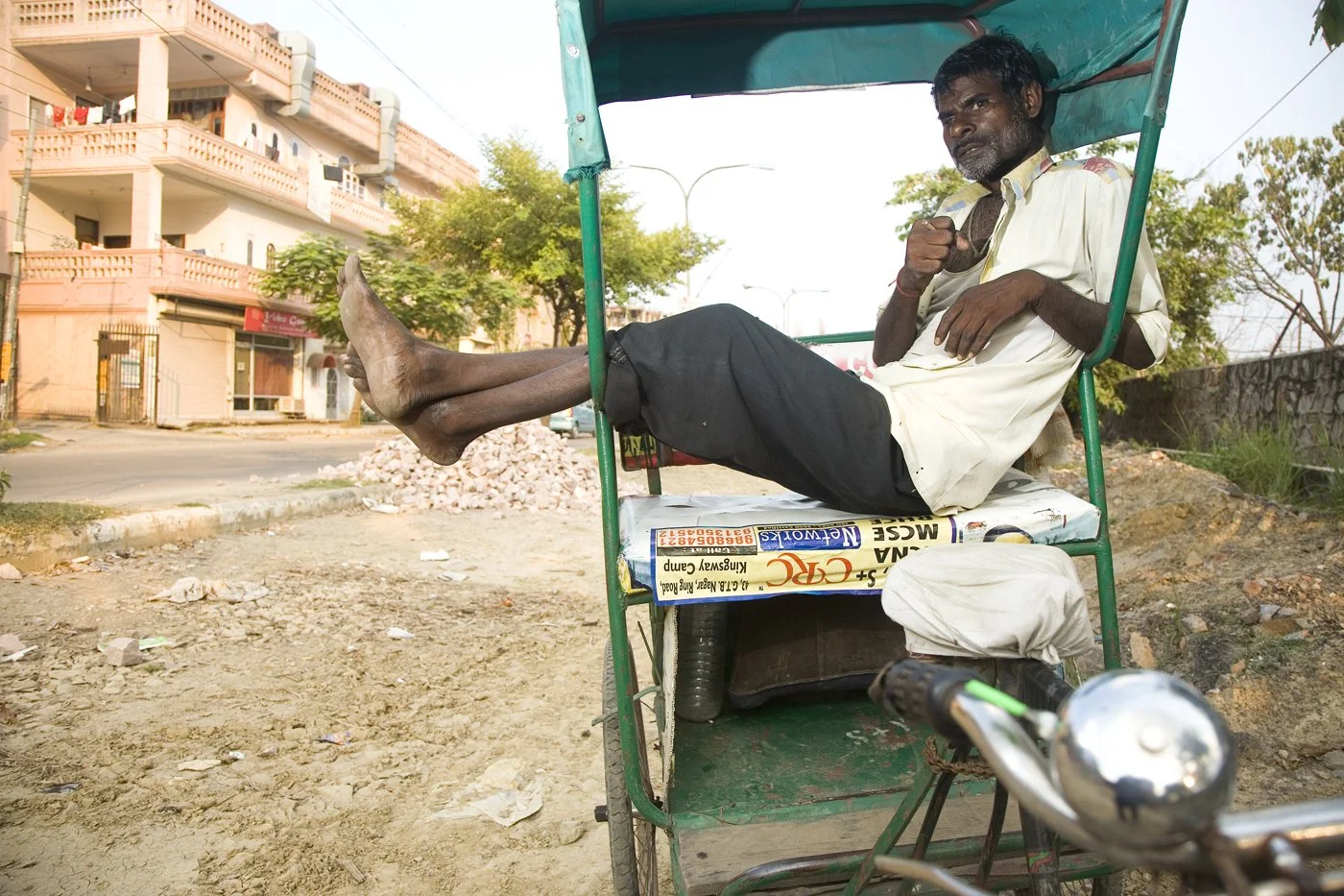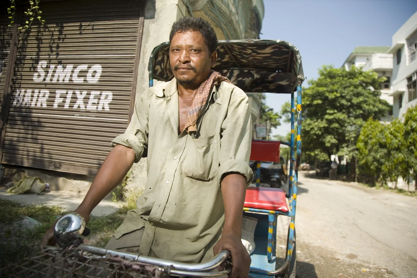 Nearly 90 percent of all the poor Indians and 95 percent of all the illiterate Indians are Dalits. My choice to photograph the rickshaw drivers of Delhi came about when I visited India in 2009 for 4 months as part of my Masters project in the National College of Art and Design. I felt an affinity with these men who sometimes earn less than $2 a day. These men are some of the last rickshaw drivers in the world. Many young immigrants see pulling a rickshaw as a means of upward social mobility. I witnessed a determination in their faces to succeed for their families, many of whom are originally from an impoverished area of South East India called Pondicherry.