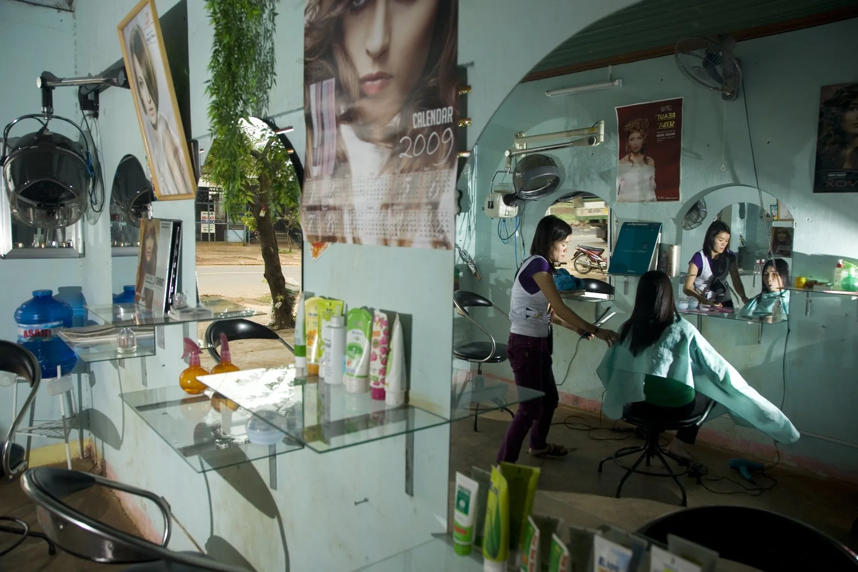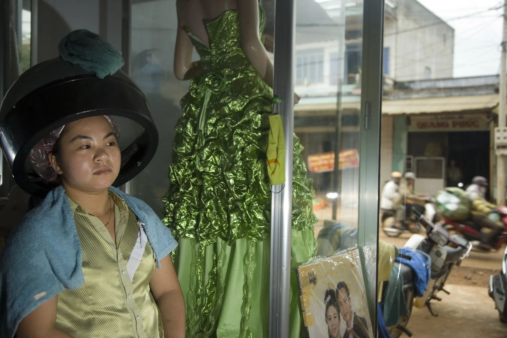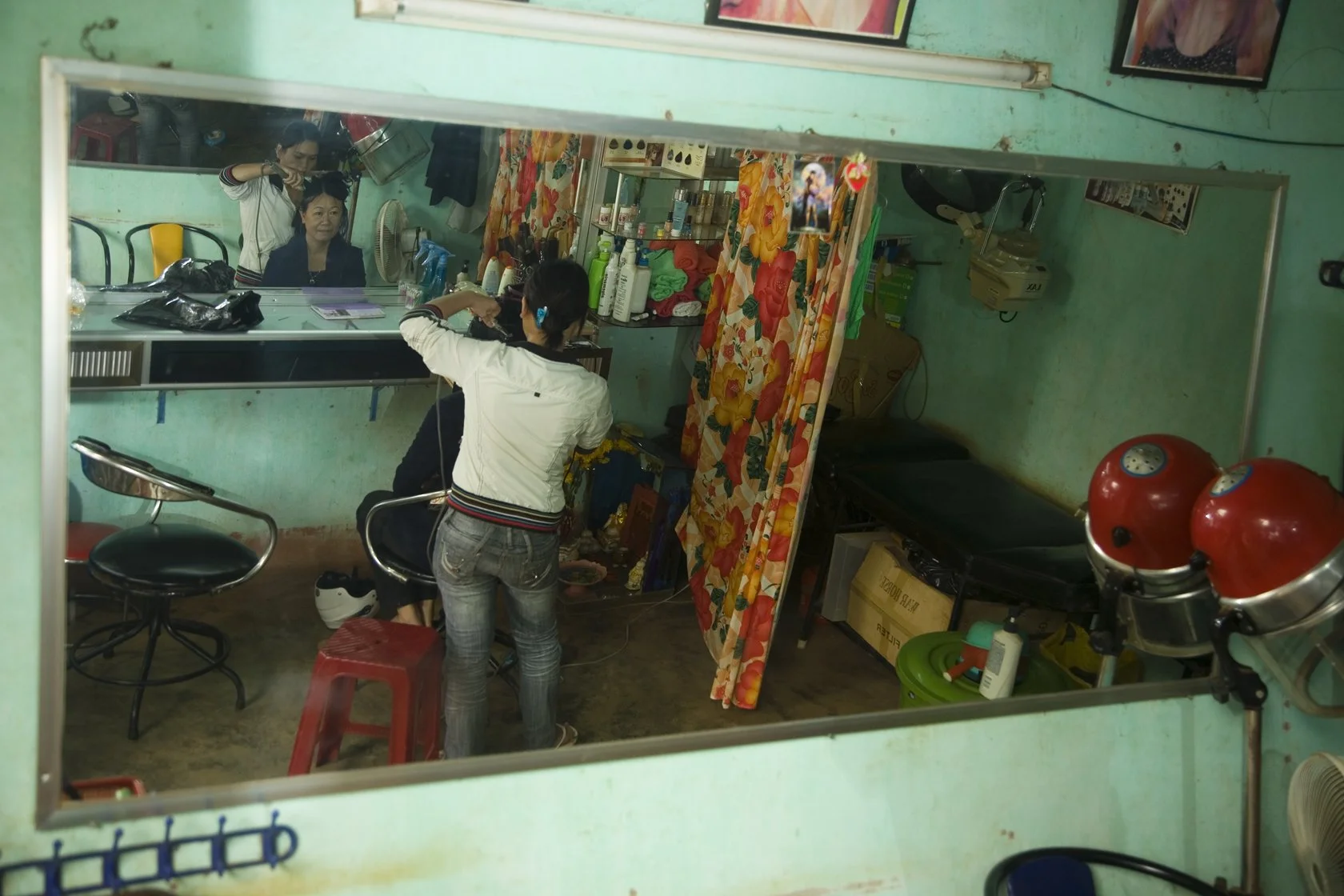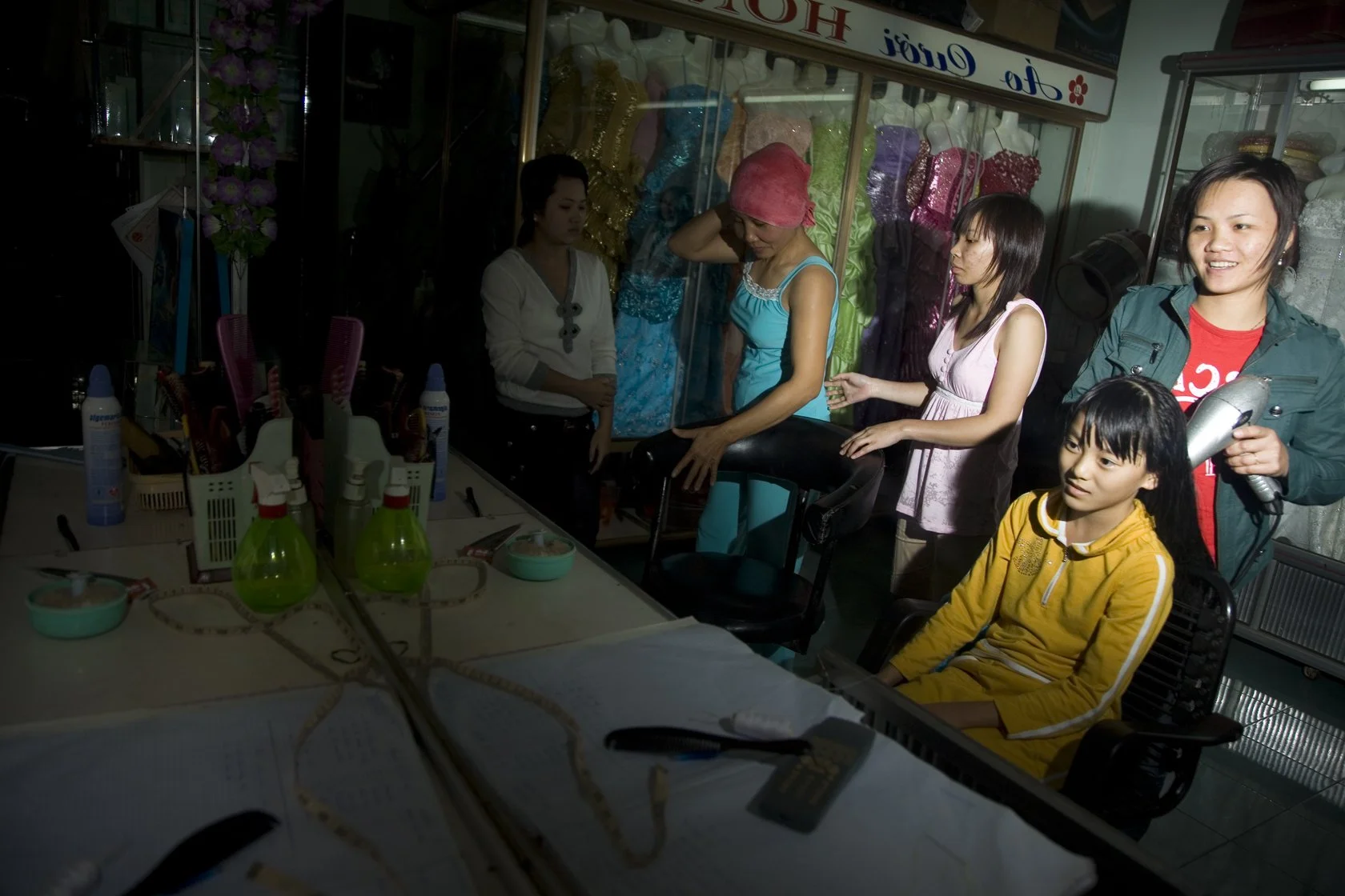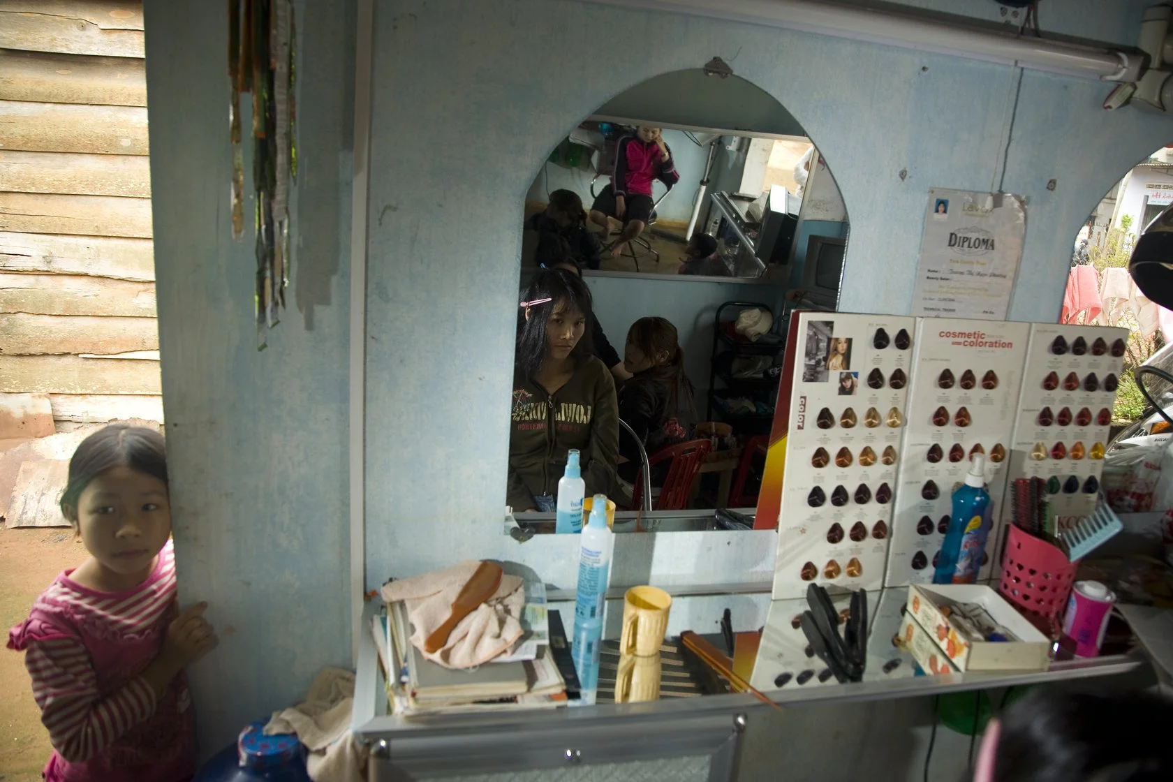 I arrived in Vietnam in October 2009. It was my second or third time there visiting my fiancee, Linh. I was to stay in her village in the province of Dal Lake for as long as it took to get married and then return to Ireland. In the event it took more than 10 months for everything to fall into place. As I travelled around locally with my camera in hand I was drawn to the hair salons in her village. The salons in Vietnam seemed primitive compared to what I saw in Dublin. I was attracted to them and decided to start photographing them over time at every opportunity. My wife of course helped to translate my objectives to the startled staff and customers and it made access straight forward. Both customer and staff were very obliging and I’m sure they thought it odd that an Irish man (a foreigner) would find any interest in them. In the end I was satisfied with my results in this project and it would be interesting to continue to make more when I return imminently.