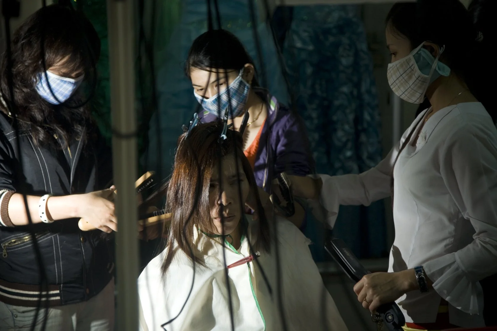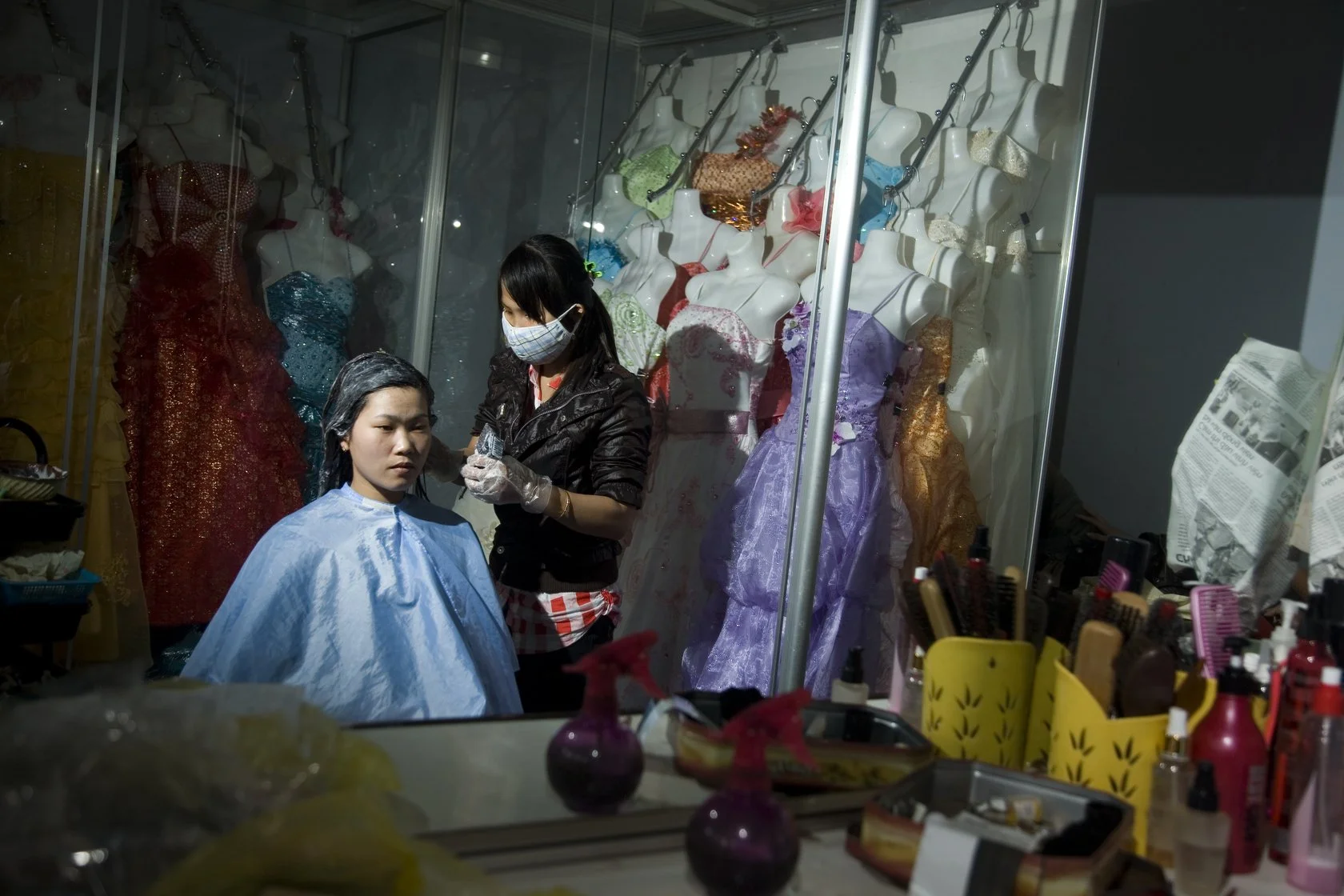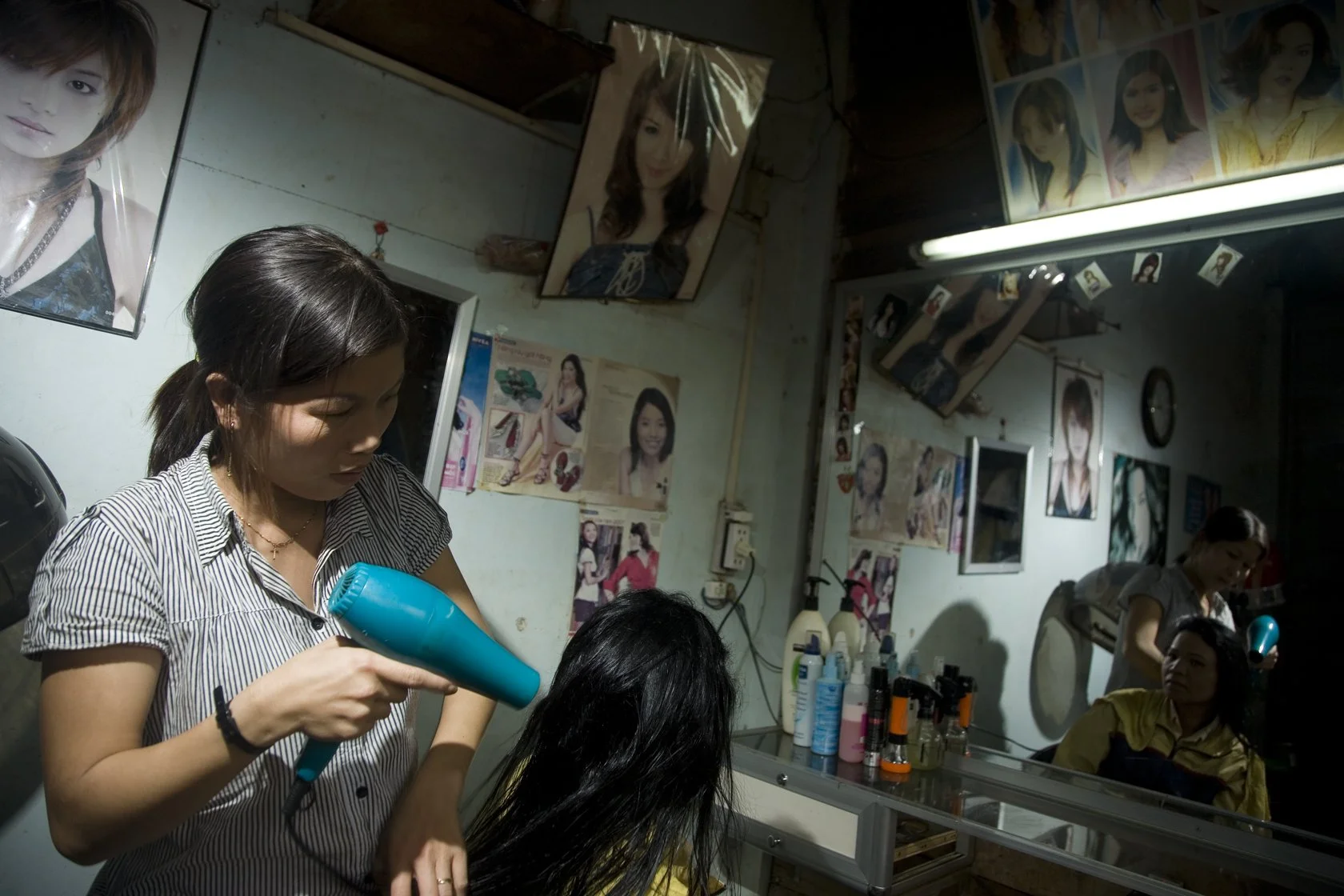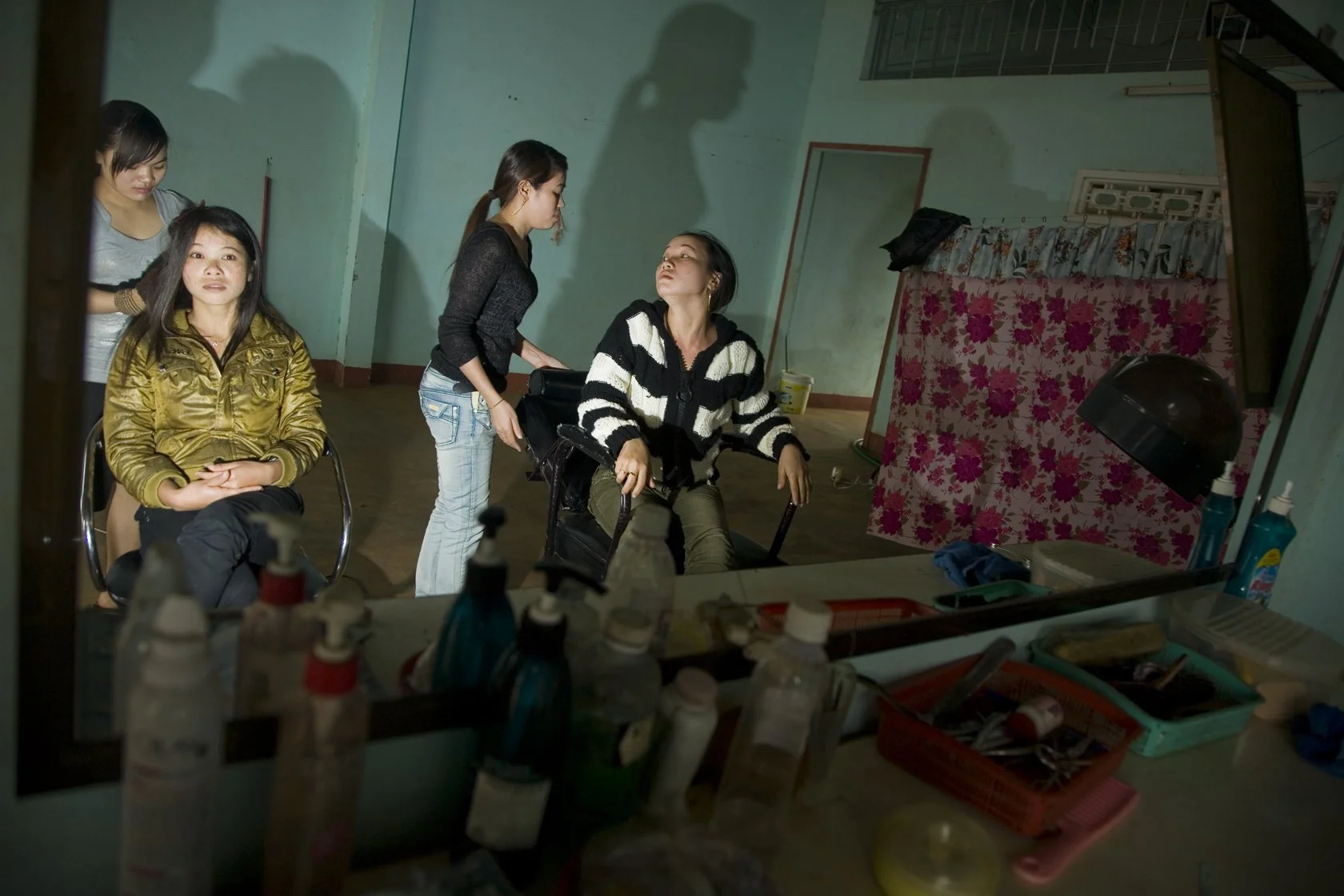 I arrived in Vietnam in October 2009. It was my second or third time there visiting my fiancee, Linh. I was to stay in her village in the province of Dal Lake for as long as it took to get married and then return to Ireland. In the event it took more than 10 months for everything to fall into place. As I travelled around locally with my camera in hand I was drawn to the hair salons in her village. The salons in Vietnam seemed primitive compared to what I saw in Dublin. I was attracted to them and decided to start photographing them over time at every opportunity. My wife of course helped to translate my objectives to the startled staff and customers and it made access straight forward. Both customer and staff were very obliging and I’m sure they thought it odd that an Irish man (a foreigner) would find any interest in them. In the end I was satisfied with my results in this project and it would be interesting to continue to make more when I return imminently.